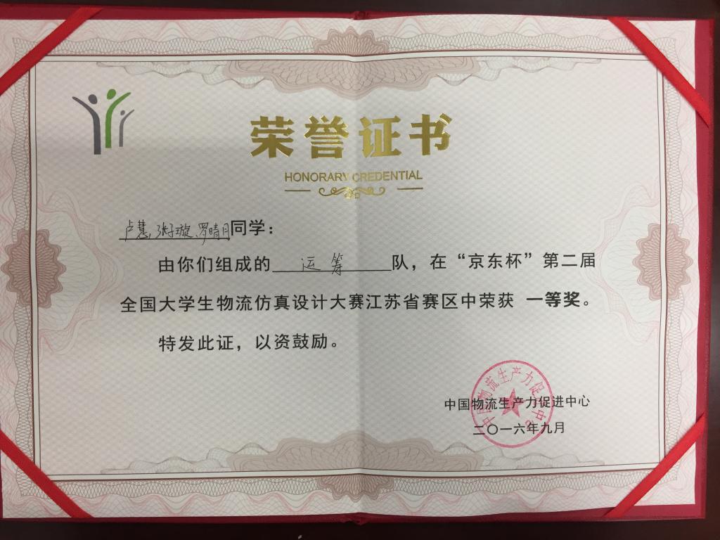 系部在“京东杯”第二届全国大学生物流仿真设计大赛江苏省赛区中荣获 一等奖