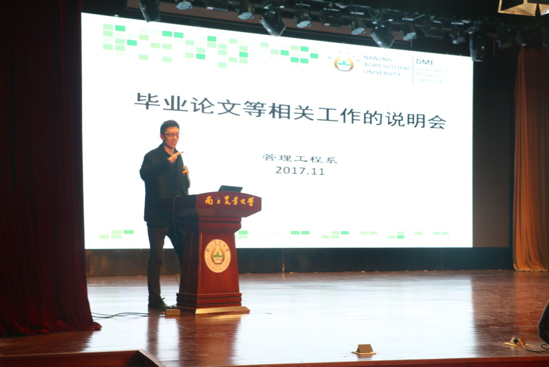 李静着重强调了毕业论文的重要性,介绍了毕业论文时间安排、如何选导师、历届论文问题总结,论文的选题要求、格式规范,论文不合格的后果及处理方法与流程等相关注意事项。他要求同学们正确处理毕业论文与实习工作之间的关系,认真负责地完成毕业论文,提高毕业论文质量。