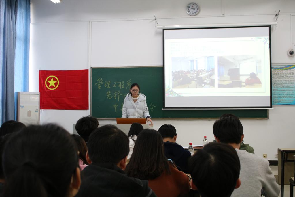 辅导员阙立刚就本次先锋支部汇报提出了几点建议:1、先锋支部是一项有时间节点的支部建设载体,是班级工作的一个推动器,希望团支书能够发挥班干部领头羊的作用,加强专业化、特色化、品牌化班级支部工作的开展;2、支部工作要结合班级的实际情况、学生的兴趣和需求以及未来职业发展的方向和要求来开展,而不是盲目的“熬粥”,否则吃力不讨好;3、要利用好各项可以依靠的资源,例如班主任、班委的工作力量,团学组织的平台优势来服务先锋支部工作的开展。